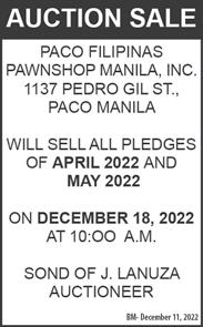 NewsSunday BusinessMirror www.businessmirror.com.ph Sunday, December 11, 2022 A2