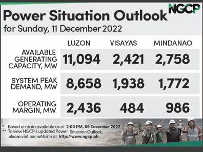 PESO EXCHANGE RATES n US 55.6110 n JAPAN 0.4070 n UK 68.0512 n HK 7.1425 n CHINA 7.9843 n SINGAPORE 41.0959 n AUSTRALIA 37.6375 n EU 58.7141 n KOREA 0.0423 n SAUDI ARABIA 14.7914 Source: BSP (December 9, 2022) Continued on A2 A broader look at today’s business EJAP JOURNALISM AWARDS BUSINESS NEWS SOURCE OF THE YEAR (2017, 2018, 2019, 2020, 2021) DEPARTMENT OF SCIENCE AND TECHNOLOGY 2018 BANTOG MEDIA AWARDS ROTARY CLUB OF MANILA JOURNALISM AWARDS 2006 National Newspaper of the Year 2011 National Newspaper of the Year 2013 Business Newspaper of the Year 2017 Business Newspaper of the Year 2019 Business Newspaper of the Year 2021 Pro Patria Award PHILIPPINE STATISTICS AUTHORITY 2018 Data Champion www.businessmirror.com.ph n Sunday, December 11, 2022 Vol. 18 No. 60 P25.00 nationwide | 2 sections 12 pages | 7 DAYS A WEEK