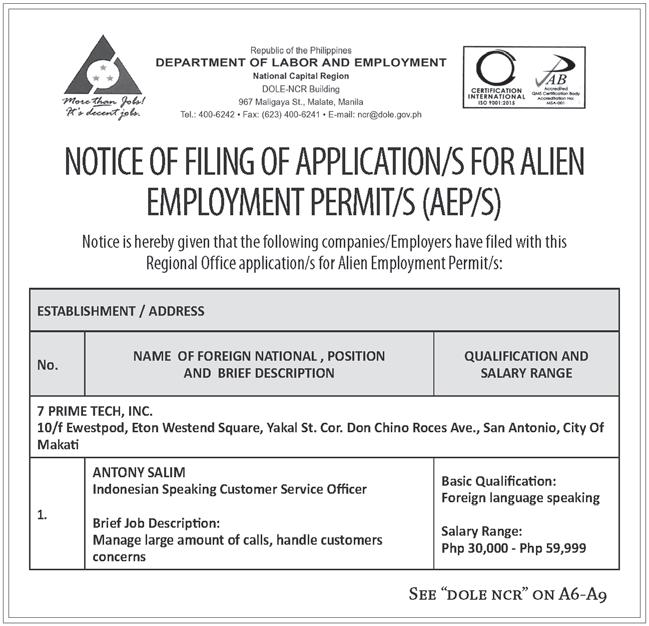 At a media briefi ng on Monday, PEZA Deputy Director General (DDG) for Operations Vivian S. Santos said the PEZA came up with an internal deadline, which is on December 16, based on PEZA Memorandum Circular (MC) 2022-070. “ e BOI would not extend PEZA’s endorsement. So, in order for PEZA to endorse on or before December 31, we need to also come up with a deadline and the deadline we have provided in our memorandum circular is December 16. at’s the last day of fi ling,” Santos said.