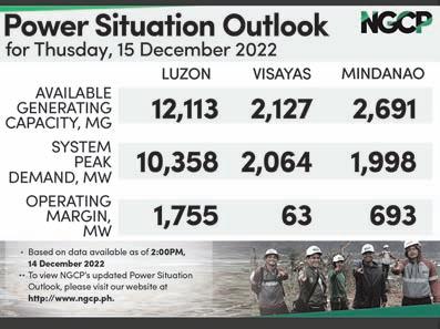 PESO EXCHANGE RATES US 55.8150 ■ JAPAN 0.4117 ■ UK 68.9762 ■ HK 7.1800 ■ SINGAPORE 41.4458 ■ AUSTRALIA 38.2500 ■ SAUDI ARABIA 14.8476 ■ EU 59.3537 ■ KOREA 0.0433 ■ CHINA 8.0309 Source BSP (December 14, 2022) C A BusinessMirror A broader look at today’s business www.businessmirror.com.ph P. | | 7 DAYS A WEEK ■ Thursday, December 15, 2022 Vol. 18 No. 64 ROTARY CLUB OF MANILA JOURNALISM AWARDS 2006 National Newspaper of the Year 2011 National Newspaper of the Year 2013 Business Newspaper of the Year 2017 Business Newspaper of the Year 2019 Business Newspaper of the Year 2021 Pro Patria Award PHILIPPINE STATISTICS AUTHORITY 2018 Data Champion EJAP JOURNALISM AWARDS BUSINESS NEWS SOURCE OF THE YEAR (2017, 2018, 2019, 2020) DEPARTMENT OF SCIENCE AND TECHNOLOGY 2018 BANTOG MEDIA AWARDS ADB RAISES PHL GROWTH FORECAST FOR ’22 TO 7.4% CHINA CUTS COVID CASE NUMBER REPORTING AS INFECTIONS SURGE WORLD | A10 Pangandaman: IMF backed creation of SWF S “M,” A S “IMF,” A MARCOS TO SIGN 2023 BUDGET BILL ON FRIDAY SENATORS of the 19th Congress led by Senate President Juan Miguel F. Zubiri pose with new presidential appointees as confirmed by the Commission on Appointments at a plenary session on Wednesday, December 14, 2022: Transportation Secretary Jaime Bautista; Department of Human Settlements and Urban Development Secretary Jose Rizalino Acuzar; National Economic and Development Authority Secretary Arsenio Balisacan; Comelec Commissioners Nelson Celis and Ernesto Ferdinand P. Maceda Jr.; together with Department of Foreign Affairs foreign service officers Irene Susan Barreiro Natividad, Ambassador to Germany; Bernard Faustino La Madrid Dy, Ambassador to the Swiss Confederation; and Catherine Flores Alpay, Foreign Services Class II. ROY DOMINGO B C U. O @caiordinario