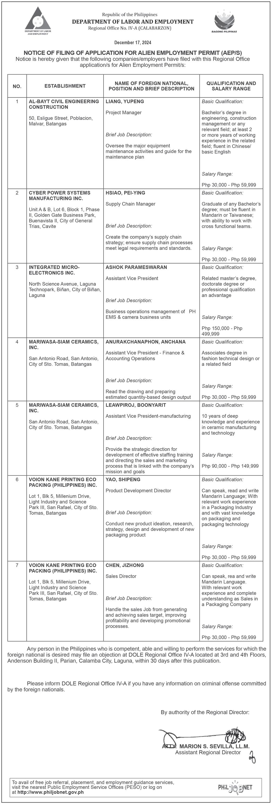 There is this pending legislation to also relax the, to extend the lease period in the Foreign Service, Foreign Investment Act, extending it to 99 years. So, this will be a welcome development by investors because they don’t have to invest upfront in buying,” Panga said. He noted that the measure is important given that land prices in the Philippines has been increasing. Allowing foreign entities to be able to lease the land they are operating in gives these investors some flexibility in their operations in the Philippines.