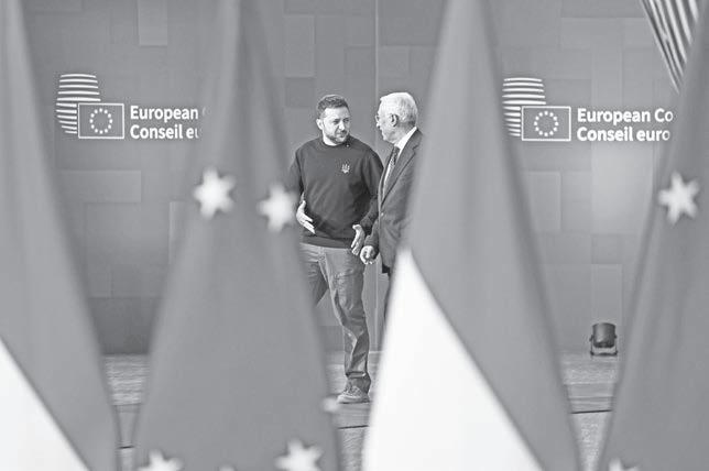 UKRAINE’S President Volodymyr Zelenskyy, left, speaks with European Council President Antonio Costa as they arrive for an EU summit at the European Council building in Brussels on Thursday, December 19, 2024. AP/GEERT VANDEN WIJNGAERT