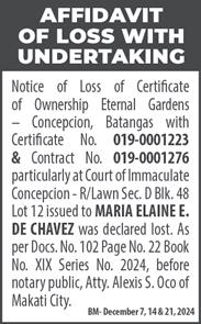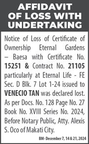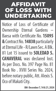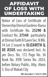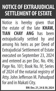 innovation and growth. Our commitment is to create an environment where businesses thrive, sustainability is prioritized, and economic opportunities benefit all Filipinos,” Roque said. Meanwhile, the Philippine Economic Zone Authority (PEZA), another investment promotion agency attached to the DTI, announced that it approved P214.176 billion in investments, a 21.89-percent increase compared to P175.709 billion last year. Th is is equivalent to 255 projects approved for the year, PEZA noted.