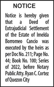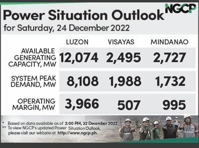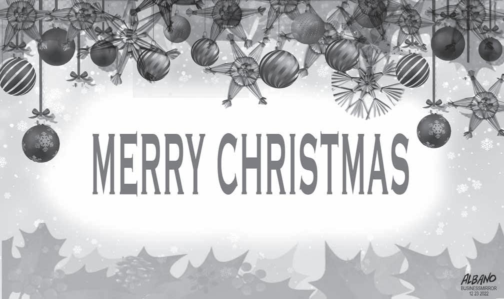PESO E xchangE ratES n US 55.1710 n jaPan 0.4165 n UK 66.6797 n hK 7.0760 n chIna 7.9030 n SIngaP OrE 40.8371 n aUStralIa 36.9977 n EU 58.5199 n KOrE a 0.0431 n SaUDI arabIa 14.6731 Source BSP (December 22, 2022) Continued on A2 A broader look at today’s business www.businessmirror.com.ph n Friday-Sunday, December 23-25, 2022 Vol. 18 No. 72 P25.00 nationwide | 4 sections 38 pages | 7 DayS a week BusinessMirror ROTARY CLUB OF MANILA JOURNALISM AWARDS 2006 National Newspaper of the Year 2011 National Newspaper of the Year 2013 Business Newspaper of the Year 2017 Business Newspaper of the Year 2019 Business Newspaper of the Year 2021 Pro Patria Award PHILIPPINE STATISTICS AUTHORITY 2018 Data Champion EJAP JOURNALISM AWARDS BUSINESS NEWS SOURCE OF THE YEAR (2017, 2018, 2019, 2020, 2021) DEPARTMENT OF SCIENCE AND TECHNOLOGY 2018 BANTOG MEDIA AWARDS A Christmas for Children