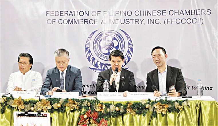 Likewise, there are opportunities to explore technological cooperation in telecoms, bioscience, medical science, energy, mining, and industrial development, the industry leader pointed out. Lim said FFCCCII advocates to promote fi sheries cooperation between rural coastal fi shing communities of both countries, security, peace and order, disaster preparedness, public housing, public health and antiterrorism cooperation.
