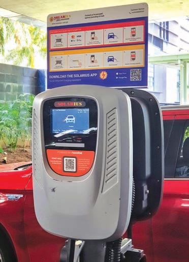 are activated by scanning each station's Qr code. The SOL a r IuS app is available for download on the apple app store and Google Play, providing an enhanced charging experience. EV drivers are presented with the charging costs before initiating the charging session. Payment methods include credit cards, apple Pay, and Google Pay, as well as pre-paid plans funded by G-Cash, PayMaya, and Western union. Solarius also offers EV Charging solutions for condo and apartment property management companies to enable tenants to charge at home. They also provide solar-powered EV Charging solutions for private residences and businesses. Cost-wise, charging in partner hotels is at P35/kWh or around P2,450, using a standard charger, achieving 80-90 percent battery charge in 10 hours.
