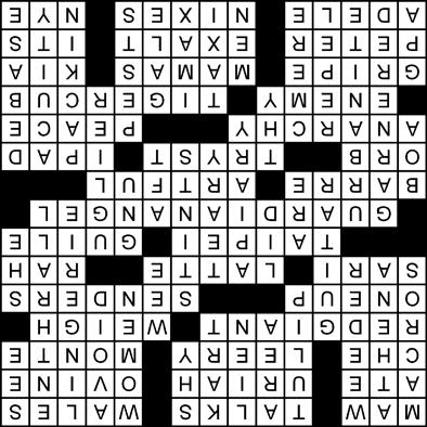 aCROSS 1 Gaping mouth 4 Chitchats 9 British country home to 427 castles 14 Had some holiday cookies, say 15 Dickens’ Heep 16 Sheeplike 17 Michael of Weekend Update 18 Suspicious (of) 19 Carlo 20 MLB athlete who’s played for Cincinnati and San Francisco? 22 Consider carefully 23 Do better than 24 Texters, at times 26 Delhi dress 27 Frothy coffee drink 30 Cheer syllable 31 ___ 101 (East Asian skyscraper) 33 Cunning 35 MLB athlete who’s played for Cleveland and Los Angeles? 38 Ballet studio fixture 39 Crafty 40 Celestial sphere 41 Secret rendezvous 42 Apple tablet 46 Lawlessness 49 Tranquility 50 Adversary 51 MLB athlete who’s played for Detroit and Chicago? 54 Kvetch 55 May honorees 56 Sportage seller 57 Flying Pan 58 Glorify 59 “___ a deal!” 60 Skyfall singer 61 Puts the kibosh on 62 Science Guy Bill DOWN 1 Keyboard time-savers 2 Wise Greek goddess 3 Dandelion remover 4 Blooming bulb 5 Field of study 6 Property claim 7 Kid’s miniature racer 8 Bashful 9 Voters since 1920 10 Steer clear of 11 Slips and so forth 12 Captivate 13 “What’d I tell you?” 21 It can be acoustic or electric 22 Teeny 24 Tours of duty 25 That lady 27 Cookie jar topper 28 Place that’s abuzz 29 Like a sad goodbye 32 Exist 33 Bearded beast 34 Harder on the eyes, as a Christmas sweater 35 Accumulated 36 City slicker 37 Toward the stern 38 Feathery neckwear 41 Biblical possessive 43 Cram, like sardines 44 Sharpness 45 Lower the status of 47 Ward off 48 Slangy summons 49 Gnats and rats 51 Prepare for takeoff 52 Big-screen format 53 Strong wind 54 Student’s stat 55 Guys Solution to today’s puzzle: ‘double play’ By SUSaN GELFaND The Universal Crossword/Edited by David Steinberg ❶ DMW secretary Susan “Toots” Ople ❷ URC president and CEO Irwin C. Lee ❸ PAL president Capt. Stanley Ng ❹ WTC-Manila president Arturo P. Boncato ❺ PCB president Pacita “Chit” Juan More Christmas magic at the movies ❶ ❷ ❸ ❹ ❺
