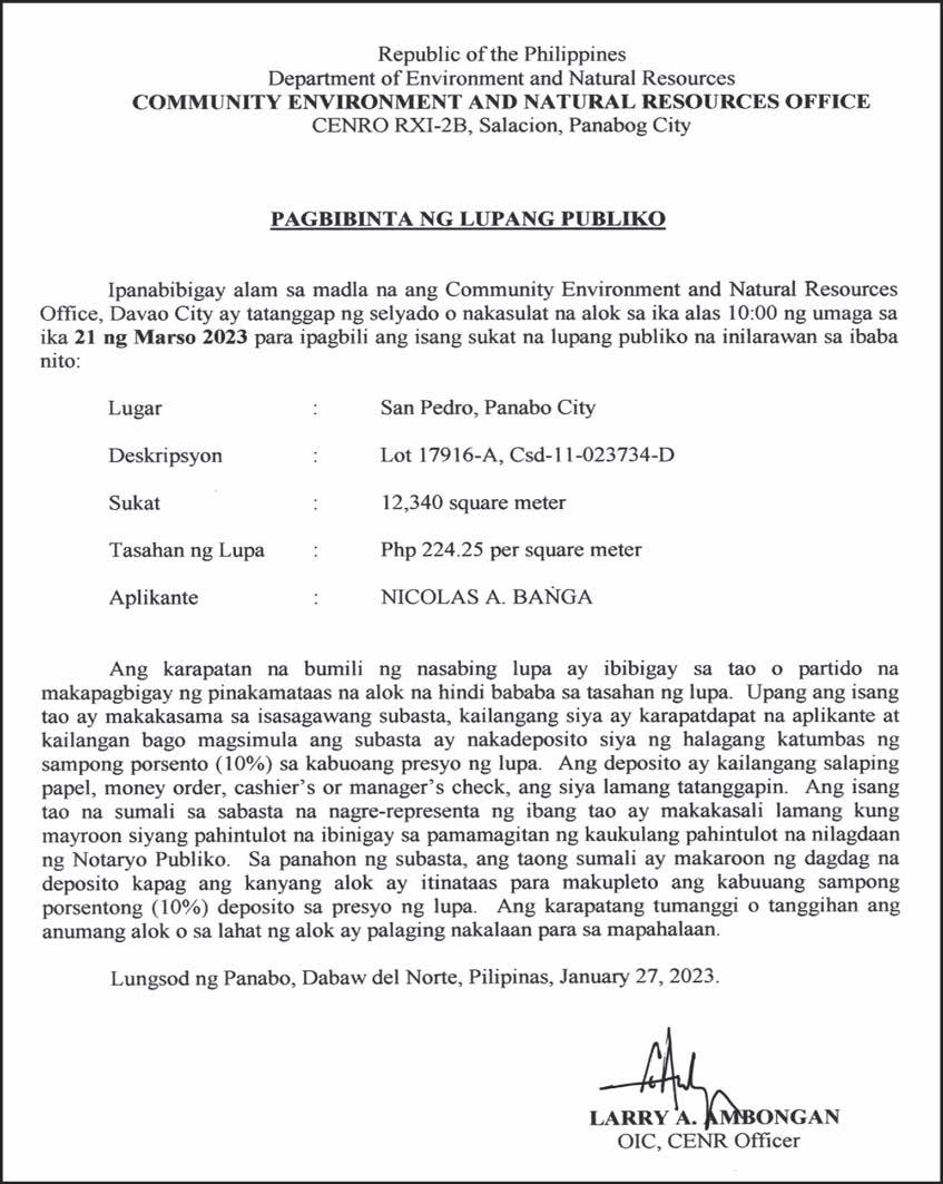 Marcos made the announcement while asking Congress to provide regular funding support for the housing goals of his administration.