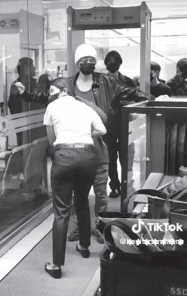 A video posted on TikTok and later shared on Twitter on Monday showed a ponytailed female Security Screening Officer frisking each member of the band after going through the metal detector frame.