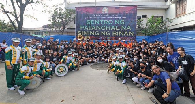 FOR the first time since the ensuing health crisis made the in-person activities impossible in almost three years, Biñanenses enjoyed the faceto-face celebrations of the Araw ng Biñan. Kicking off this festivity was the formal opening rites at Plaza Rizal, followed by the Grand People’s Parade. A groundbreaking ceremony for the legacy project of Mayor Dimaguila, the “Sentro ng Patanghal na Sining,” then happened besides the Old Municipal Building. Next was a press conference where the above cited programs and plans of the city government were unveiled by the local chief executive, Vice Mayor Alonte and Congresswoman Naguiat, the so-called “Big Three.” A Thanksgiving Mass at the San Isidro Labrador Diocesan Shrine was heard in the afternoon. Capping of the day was a Thanksgiving Dinner at the Historic Alberto Mansion. The second day saw the “Art in Public Spaces: Pot Painting Competition”, the “Pasasalamat sa mga Beteranong Biñanense”, the Unveiling of the Galing Pook Award Marker, and the 3rd Biñan City Sining Musikahan: Drum and Lyre Band Competition—all held at Plaza Rizal. The Holy Infant Jesus of Prague Catholic School won the Art in Public Spaces competition while the Our Lady of Lourdes Elementary School was named the winner in the Drum and Lyre Band Competition. A Film Viewing of the criticallyacclaimed international movie “Triangle of Sadness” happened at Southwoods Mall Cinema 1. In the evening was the Araw ng Biñan 2023 Concert at Evangelista Bridge top billed by national and local artists.