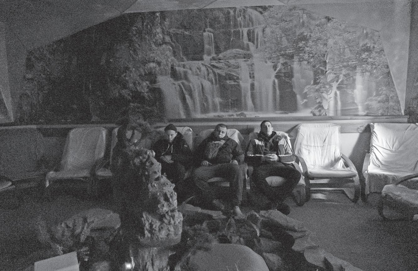 KHARKIV, Ukraine—Sitting on comfy armchairs in a low-lit room smelling of lavender and pine trees, the men take deep breaths as they close their eyes and listen to meditation music.