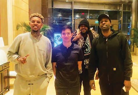 STRONG Group Coach Charles Tiu (center) welcomes former National Basketball Association star Nick Young and Shabazz Muhammad.