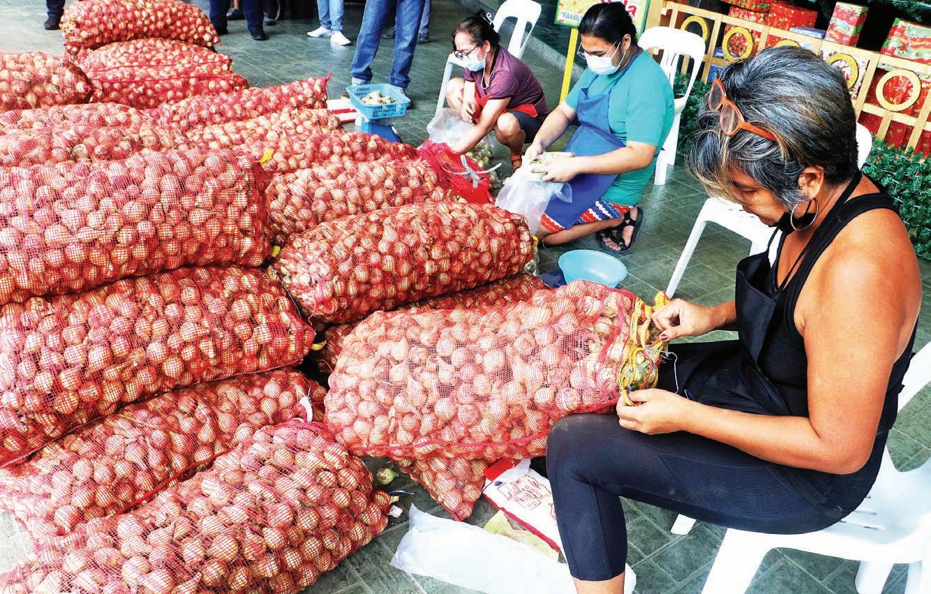 check IN an effort to help farmers and consumers, Rice Up and Community Pantry Ph are buying white onions directly from farmers of Pangasinan in what they call a “solidarity purchase.” The two groups bought the white onions from farmers at P375 per kilo and sold them for P400 per kilo to customers at Claret School in Quezon City. The current market price of the cooking ingredient stands at P550 per kilo. The Philippines will import more than 21,000 tons of onions to boost domestic supply as surging prices helped push inflation to a 14-year high. NONOY LACZA SC: AIM OF 2005 JMSU IS TO DISCOVER PETROLEUM www.businessmirror.com.ph P25.00 nationwide | 2 sections 24 pages | 7 DAYS A WEEK