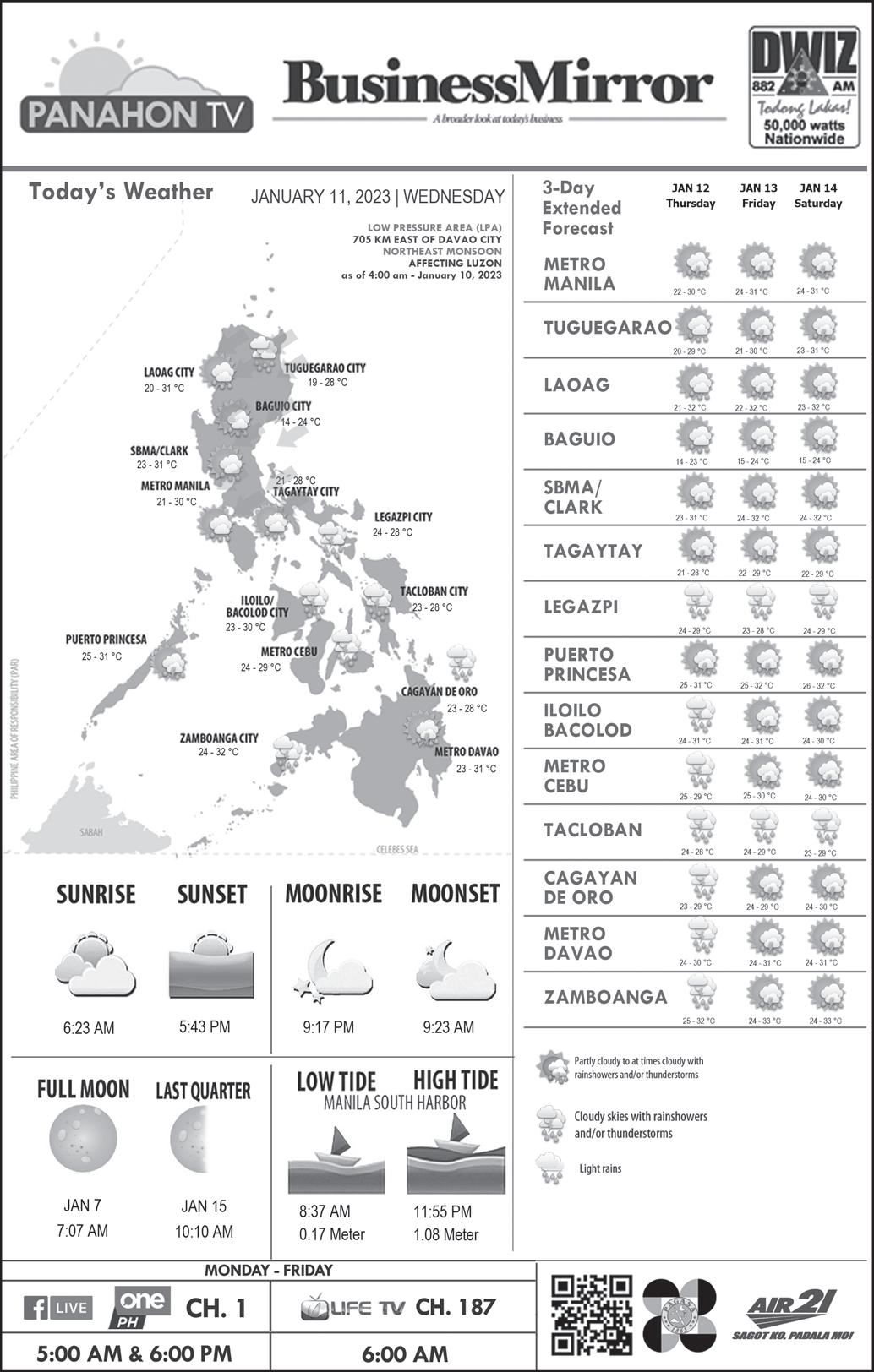 n Wednesday, January 11, 2023 Vol. 18 No. 88 PESO EXCHANGE RATES n US 55.1640 n JAPAN 0.4183 n UK 67.2284 n HK 7.0692 n CHINA 8.1447 n SINGAPORE 41.4673 n AUSTRALIA 38.1238 n EU 59.2020 n KOREA 0.0445 n SAUDI ARABIA 14.6877 Source BSP(10January2023) CALIFORNIANS WARNED TO FLEE, HEAD TO HIGH GROUND AS FLOODWATERS RISE THE WORLD ›› A13 A broader look at today’s business BusinessMirror GOVT