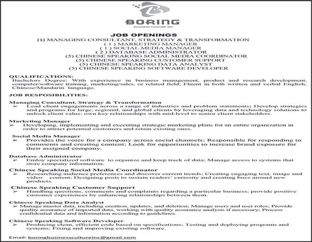 Basic Qualification: Proven experience as Mandarin Operations Manager. Excellent communication, interpersonal and presentation skills.