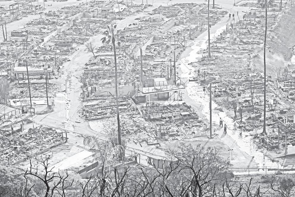 Dozens of blocks were flattened to smoldering rubble in scenic Pacific Palisades. Only the outlines of homes and their chimneys remained. In Malibu, blackened palm strands were all that was left above debris where oceanfront homes once stood.