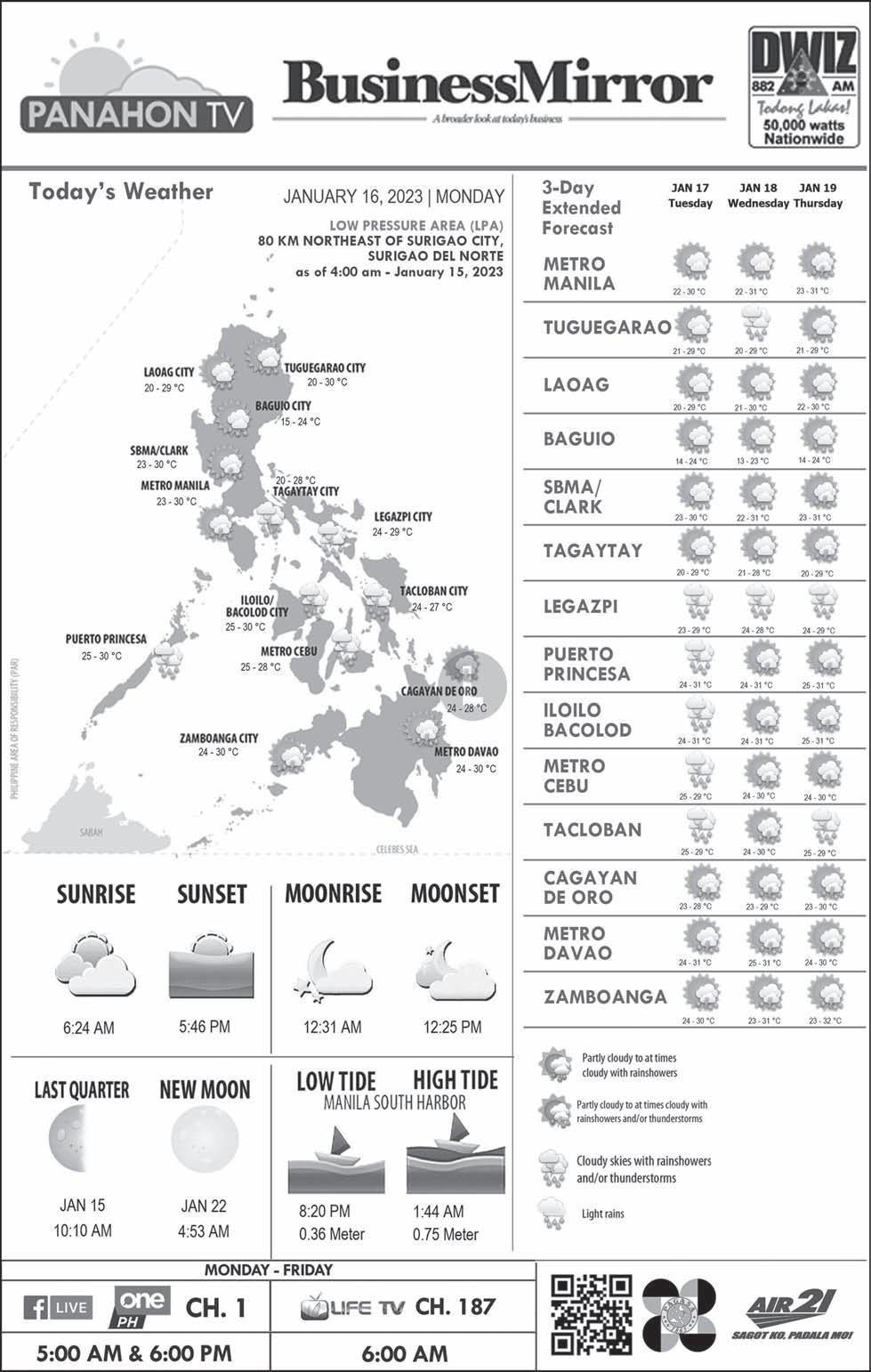 w P25.00 nationwide | 2 sections 18 pages | BusinessMirror ROTARY CLUB OF MANILA JOURNALISM AWARDS 2006 National Newspaper of the Year 2011 National Newspaper of the Year 2013 Business Newspaper of the Year 2017 Business Newspaper of the Year 2019 Business Newspaper of the Year 2021 Pro Patria Award PHILIPPINE STATISTICS AUTHORITY 2018 Data Champion EJAP JOURNALISM AWARDS BUSINESS NEWS SOURCE OF THE YEAR (2017, 2018, 2019, 2020, 2021) DEPARTMENT OF SCIENCE AND TECHNOLOGY 2018 BANTOG MEDIA AWARDS n Monday, January 16, 2023 Vol. 18 No. 93 BIZ GROUPS, LAWMAKER PUSH NAIA PRIVATIZATION See “Biz groups,” A2 PESO EXCHANGE RATES n US 55.1760 n JAPAN 0.4270 n UK 67.3368 n HK 7.0661 n CHINA 8.2034 n SINGAPORE 41.7526 n AUSTRALIA 38.4687 n EU 59.8660 n KOREA 0.0445 n SAUDI ARABIA 14.6913 Source: BSP (January 13, 2023)