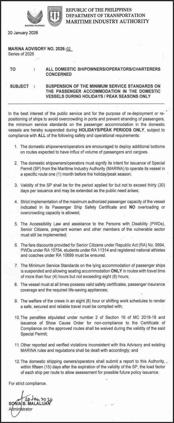 Passenger traffic also recorded a strong performance, with 82.49 million passengers served in 2025, up from 78.81 million in 2024 and 73.64 million in 2023, reflecting Filipinos’ continued reliance on sea travel for inter-island mobility.
