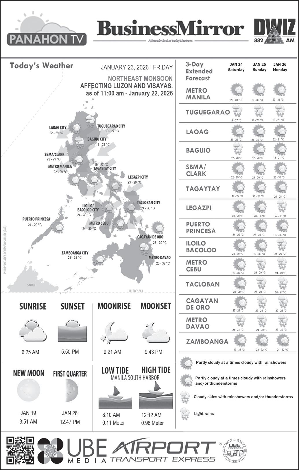 “Other positive factors for the peso exchange rate recently: The Philippines made a significant natural gas discovery for the first time in more than a decade that could reduce the country’s need for imported natural gas, coal, and other energy products; continued net foreign buying at the local stock market for almost all trading days since the start of 2026, or 14 out of the 15 trading days of 2026, at +US$4.8 million on January 22, 2026, after the previous trading day’s +US$4.3 million,” said Ricafort.
