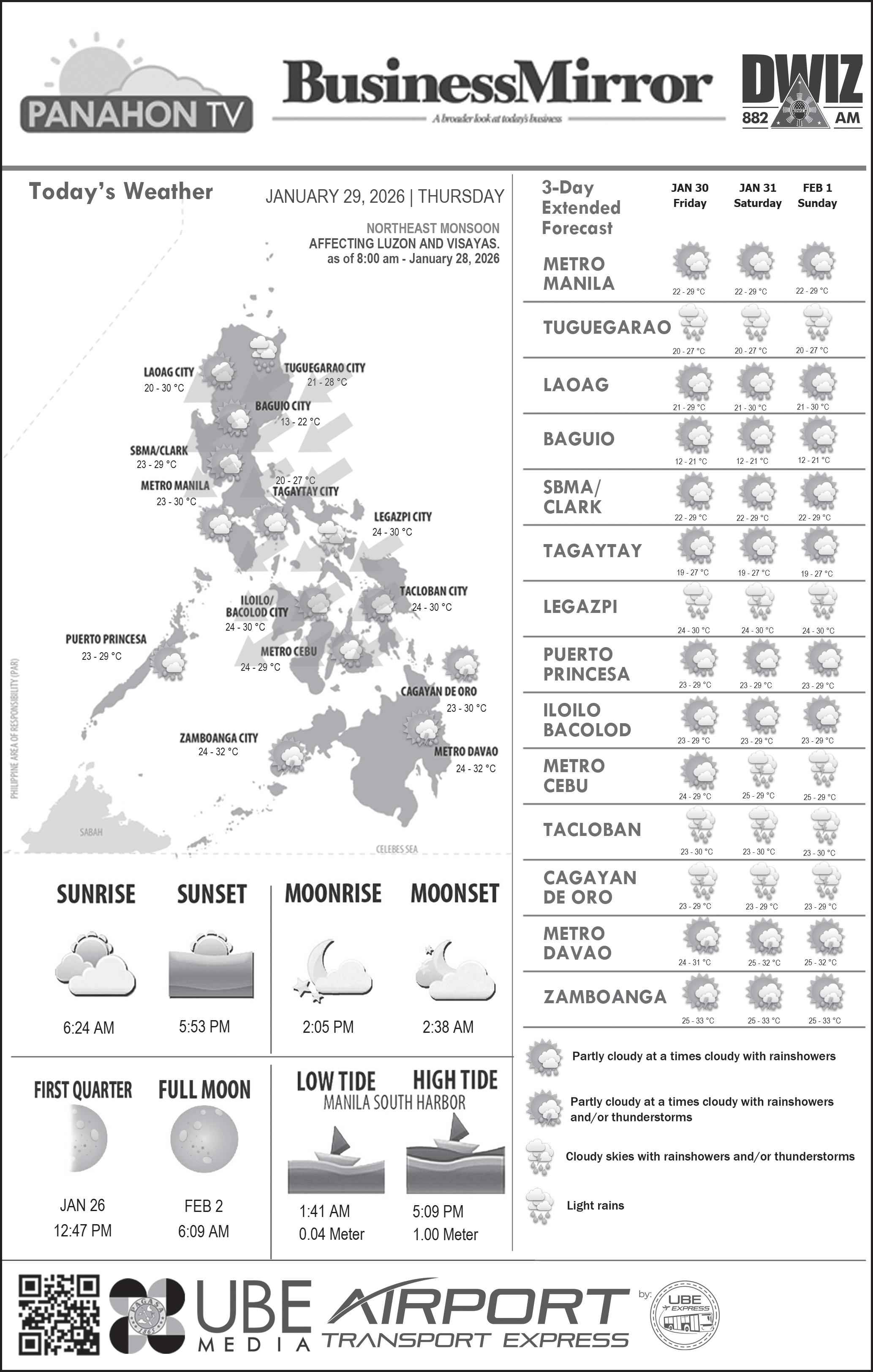 The downward revisions followed the DBCC’s decision to lower the country’s gross domestic product (GDP) growth target to 5 to 6 percent for 2026, from the earlier 6 to 7 percent.