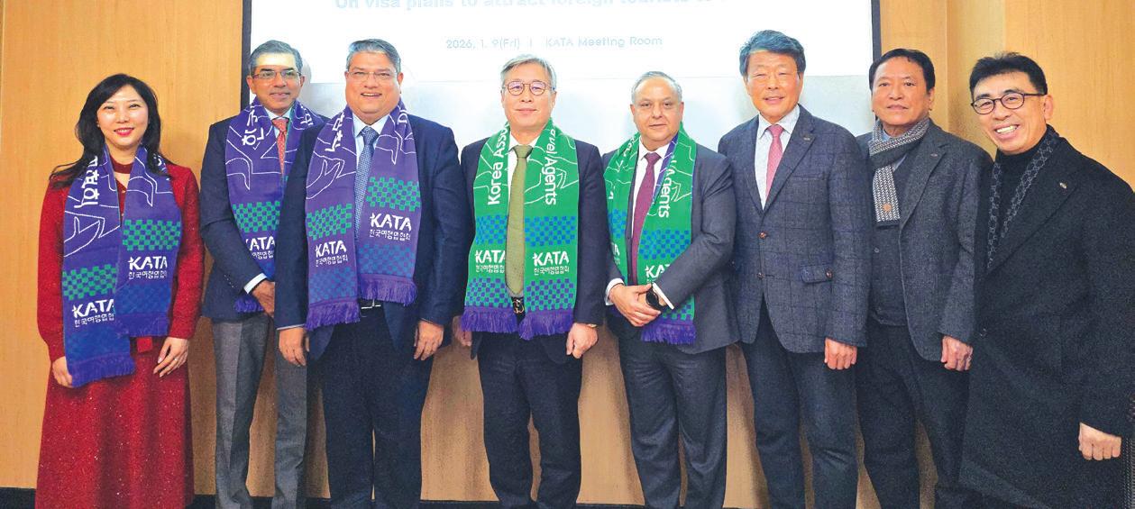 The meeting to explore cooperation measures was organized at the KATA office in Seoul on January 9. Chairperson Lee Jin-seok, Chair of the International Cooperation Committee Choo Shinkang, KCCT Company Director and CEO Kim Sung-soo, Hoin Travel Director and CEO Wang Deok-shin, VFS Global representatives led by Deputy Chief Financial Officer Dilliprasad Joshi, Chief Operating Officer-China Kishen Singh, Regional Head for North Asia Atul Lall, and Country Manager for South Korea Kim Eun-hye were in attendance. Both organizations exchanged in-