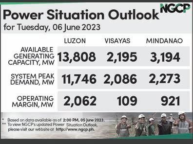 BusinessMirror ROTARY CLUB OF MANILA JOURNALISM AWARDS 2006 National Newspaper of the Year 2011 National Newspaper of the Year 2013 Business Newspaper of the Year 2017 Business Newspaper of the Year 2019 Business Newspaper of the Year 2021 Pro Patria Award 2018 Data Champion EJAP JOURNALISM AWARDS BUSINESS NEWS SOURCE OF THE YEAR (2017, 2018, 2019, 2020, 2021) DEPARTMENT OF SCIENCE AND TECHNOLOGY 2018 BANTOG MEDIA AWARDS PESO EXCHANGE RATES n US 55.9610 n JAPAN 0.3998 n UK 69.6826 n HK 7.1408 n CHINA 7.8862 n SINGAPORE 41.4342 n AUSTRALIA 36.9343 n EU 59.9342 n KOREA 0.0429 n SAUDI ARABIA 14.9209 Source: BSP (June 5, 2023) w P25.00 nationwide | 2 sections 22 pages | n Tuesday, June 6, 2023 Vol. 18 No. 232 See “DBM,” A2