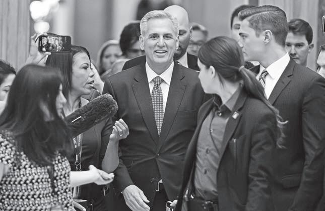SPEAKER of the House Kevin McCarthy, R-Calif., walks to the House chamber at the Capitol in Washington on May 31, 2023 as the House moves toward passage of the debt limit bill. AP/JOSE LUIS MAGANA