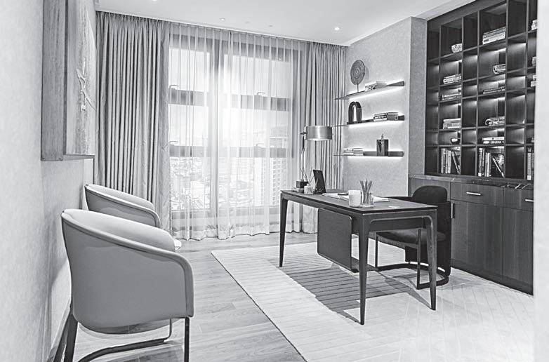 o ffI CE | Ac tual photograph. The generous office space showcases the future of work, where green practices and innovative design come together harmoniously. Embrace serenity and sophistication as the warm hues of dusk envelop Eluria.