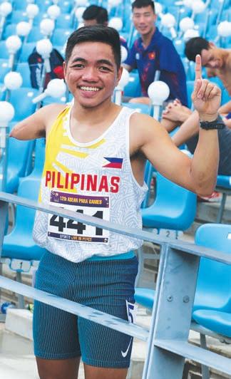 R osalie Terrefiel and Andrei Kuizon also snared a gold medal each with Terrefiel reigning supreme in women’s javelin F11 and Kuizon ruling men’s shot put F54/54. T he wards of coach Joel Deriada hiked their gold medal haul to six to match last year’s harvest in Surakarta in Indonesia with still one day remaining in the four-day centerpiece sport.