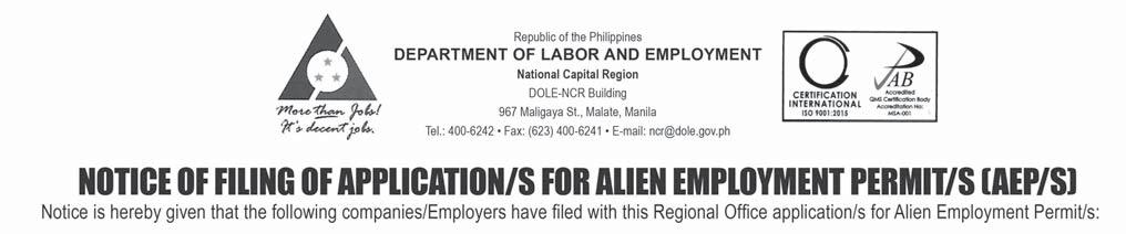 He stressed that the government’s new measures are targeted to generate more jobs in other higher value-added sectors like BPO, IT, accounting, and healthcare. Cai U. Ordinario