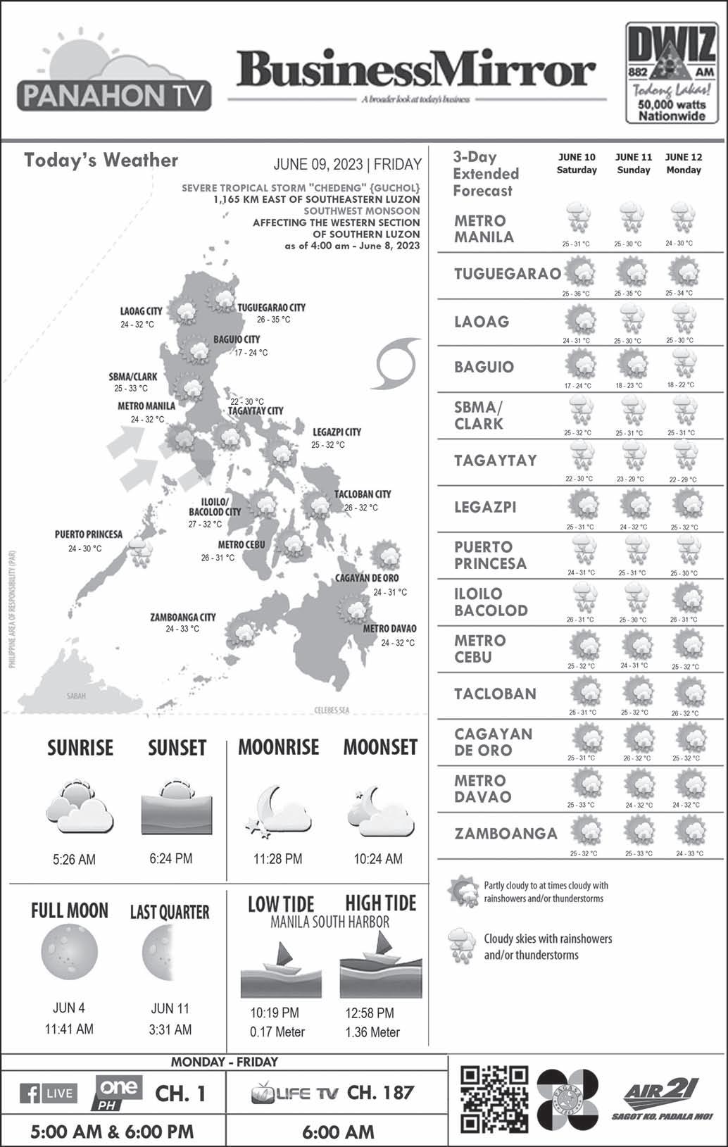 PESO E xchangE ratES n US 56.0760 n jaPan 0.4002 n UK 69.7698 n hK 7.1522 n chIna 7.8604 n SIngaP OrE 41.5840 n aUStralIa 37.3074 n EU 60.0069 n KOrE a 0.0429 n SaUDI arabIa 14.9536 Source: BSP (June 8, 2023) FIrSt rrr cUt SIncE ‘20 FOr StablE lIQUIDItY, crEDIt Banks’ RRR slashed by 250 bps A broader look at today’s business www.businessmirror.com.ph n Friday, June 9, 2023 Vol. 18 No. 235 P25.00 nationwide | 2 sections 34 pages | 7 days a week BusinessMirror ROTARY CLUB OF MANILA JOURNALISM AWARDS 2006 National Newspaper of the Year 2011 National Newspaper of the Year 2013 Business Newspaper of the Year 2017 Business Newspaper of the Year 2019 Business Newspaper of the Year 2021 Pro Patria Award PHILIPPINE STATISTICS AUTHORITY 2018 Data Champion EJAP JOURNALISM AWARDS BUSINESS NEWS SOURCE OF THE YEAR (2017, 2018, 2019, 2020, 2021) DEPARTMENT OF SCIENCE AND TECHNOLOGY 2018 BANTOG MEDIA AWARDS See “DMW,” A2 See “RRR,” A2 DMW notes rise in OFW deployment beyond 1M IbPaP taPS a.I. FIrM tO traIn DIgItal labOr See “IBPAP,” A2 ‘Transmission infra vital to RE boost’ See “Transmission,” A2 In a StOrM, bUt StrOng as seen from barbara’s Spanish heritage restaurant on heneral luna Street in Intramuros, Manila, the Philippine flag, its vibrant colors tangled in the rain, holds profound symbolism as the nation approaches
