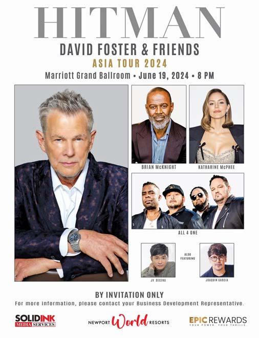 bers enjoyed front-row seats to the grand fireworks display. Being an Epic Rewards member also grants invites to special concerts and world-class performances. This June, select Epic Rewards members will get to witness top international acts in the one-night concert David Foster and Friends at the Marriott Grand Ballroom on June 19. Exclusive and rewarding in every sense, Epic Rewards members indulge in world-class dining, spectacular entertainment, luxury retail, and all-star hospitality that hallmark the Newport World Resorts’ epic experience. For more information on the Epic Rewards program, visit www. newportworldresorts.com and follow @newportworldresorts