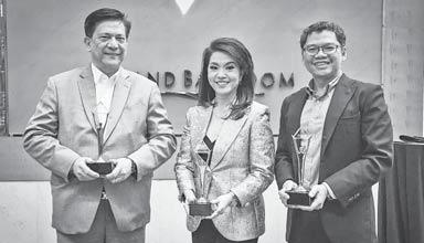 with our teams who tirelessly make them happen.” Launched in 2002, the AsiaPacific Stevie Awards are the only business awards program to recognize innovation in the workplace in all 29 markets of the AsiaPacific region. W nningest team. Smar t Communications Consumer Wireless Business Head A ex Caeg, PLDT and Smar t Group Head of Corporate Communications Cathy Yang, and Smar t Communications Head of Prepaid and Content Lloyd Mana oto.