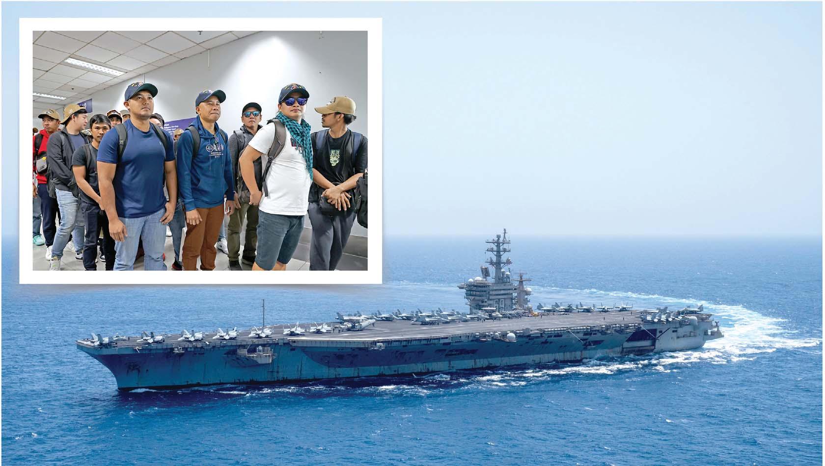 SEAS OF STRIFE The USS Dwight D. Eisenhower, one of the oldest aircraft carriers in the US Navy, sails in the Red Sea on Wednesday, June 12, 2024. It leads the US response to the Houthi rebels’ ongoing attacks targeting both commercial vessels and warships in this crucial waterway. (Inset photo) Twenty-one out of 22 Filipino seafarers on board MV Tutor, who were rescued from a Houthi attack in the Red Sea on June 12, 2024, finally arrived at Naia Terminal 3 at 11:17 am Monday on a Gulf Air flight from Bahrain, accompanied by Labor Attaché Hector Cruz of the Department of Migrant Workers (DMW) MWO-Al Khobar. The US militar y, engaged in its most intense combat since World War II, had launched a wave of attacks on Houthi radar sites and drone boats after the Tutor, a Liberian-flagged, Greek-owned bulk cargo carrier manned mostly by Filipinos, was struck by a bomb-carrying drone boat, leaving one Filipino sailor missing. The Houthis claimed their attacks were to halt the Israel-Hamas war in Gaza, but often targeted unrelated ships and sailors. The Tutor remains in the Red Sea, slowly sinking. Story in A5 News, “Seafarers home, recall Houthi drone attack on cargo ship in Red Sea.” NONIE REYES & AP/BERNAT ARMANGUE THE WORLD | A9 EU LEADERS GATHER IN BRUSSELS TO DIVVY UP TOP JOBS AMID SHIFTING POLITICAL LANDSCAPE UN delegates to ‘sutukil’ in Cebu for regional gastronomy forum PESO EXCHANGE RATES US 58.5890 JAPAN 0.3732 UK 74.7478 HK 7.5015 CHINA 8.0787 SINGAPORE 43.3671 AUSTRALIA 38.8679 EU 62.9363 KOREA 0.0426 SAUDI ARABIA 15.6175 Source: BSP (June 14, 2024) THE Philippines hosts the first United Nations Tourism Regional Forum on Gastronomy Tourism for Asia and the Pacific on June 26 and 27 in Cebu City. PHOTO BY WORLD TOURISM FORUM INSTITUTE