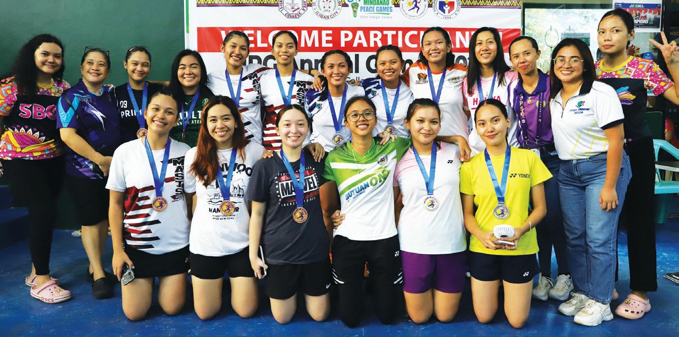 THE medalists in badminton led by champion team Palawan State University, runner-up Saturnino Urios University and third-placer Northwestern Mindanao State College of Science and Technology.
