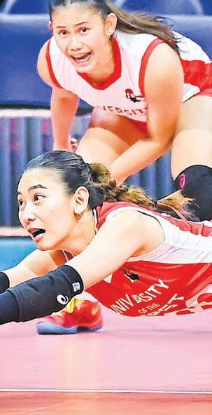 Sam Cantada and came up with 11 points on eight spikes, two aces, and a block, while making 12 excellent digs and four receptions. “ I never really doubted Celine’s performance. I never really felt like it would be a big loss if there was a player who couldn’t play because I had somebody else to help the team,” said NU head coach Regine Diego on Marsh’s first start. NU improved to 4-1, claiming solo second place behind La Salle at 4-0. Idle UP is in third at 3-1. We just moved on. The loss to UP wasn’t the end. We still have a lot of chances to improve and work on the next matches,” said team captain Vange Alinsug, who delivered an allaround effort of 10 points, seven digs, and seven receptions. Panique delivered 12 points. Cantada, who injured her right shin during last Saturday’s match against the Fighting Maroons, was in uniform but did not see action. Diego is optimistic that the Dasmariñas, Cavite native will be ready for Sunday’s showdown against Ateneo. Van Bangayan paced the Lady Warriors with 12 points and five receptions, while Khy Cepada added 10 points, seven receptions and six digs. The Lady Warriors, winless in five matches, try to break through on Saturday against undefeated La Salle.