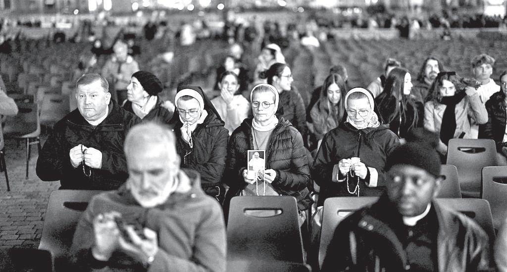 CATHOLIC nuns attend a nightly rosary prayer service for Pope Francis in St. Peter’s Square at the Vatican, Thursday, March 6, 2025. AP/FRANCISCO SECO