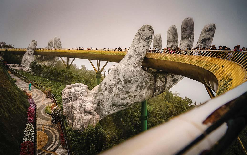 In recent years, the main attraction to Da Nang has been the Ban Hills and its Golden bridge, also known as the Golden Hand bridge. Located on top of the Nui Chua Mountain, the 500-footlong pedestrian pathway has been ranked among the top 10 bridges in the world.
