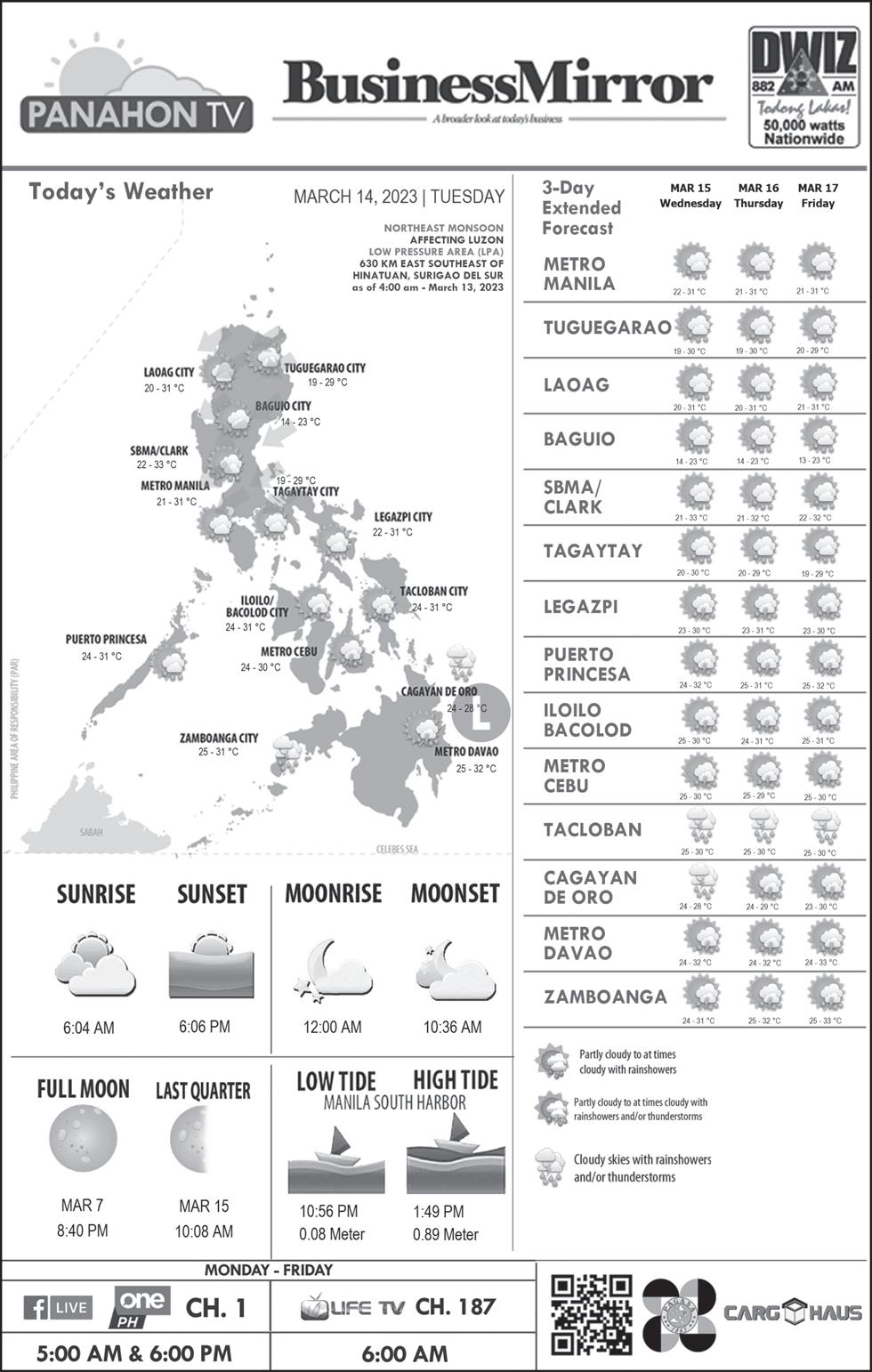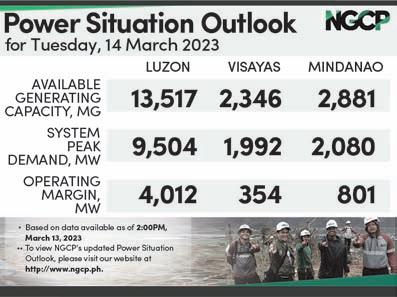 See “House,” A2 See “Insurance,” A2 PESO EXCHANGE RATES n US 55.2030 n JAPAN 0.4120 n UK 66.7570 n HK 7.0351 n CHINA 7.9779 n SINGAPORE 40.9245 n AUSTRALIA 36.4174 n EU 58.8740 n KOREA 0.0418 n SAUDI ARABIA 14.7051 Source: BSP (March 13, 2023)
