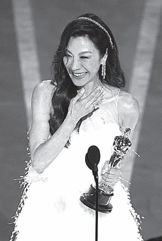 HISTORY ALL AT ONCE Michelle Yeoh has won the Academy Award for best actress and made history all at once. The Malaysian-born actor became the first Asian woman to win the Academy Award for best actress on Sunday night for her multifaceted performance in the multiversal Everything Everywhere All at Once. “For all the little boys and girls who look like me watching tonight, this is a beacon of hope and possibility. This is proof that dreams dream big and dreams do come true,” she said. “And ladies, don't let anyone ever tell you you’re past your prime.” See story in Life, page B5. AP/CHRIS PIZZELLO
