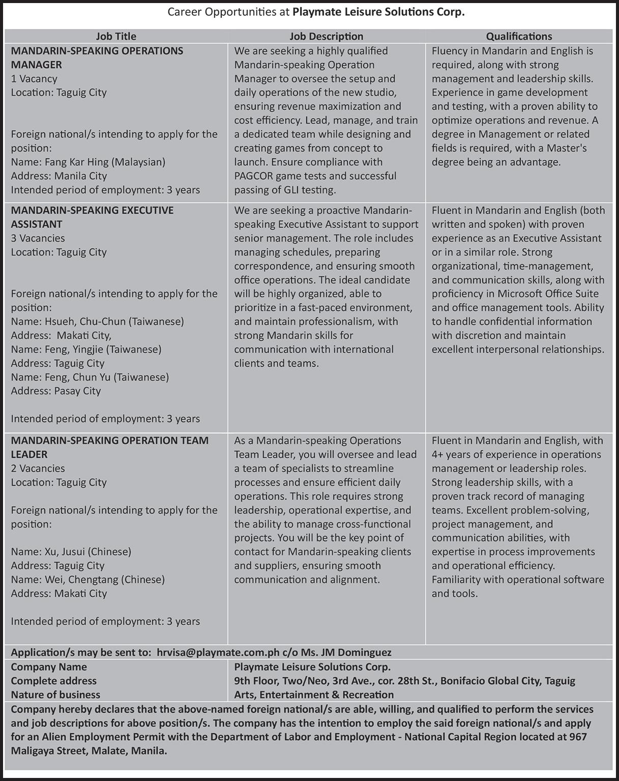 Apart from this, Peza said it met with Keidanren (Japanese Business Federation) to discuss global economic trends, trade policies, and potential areas for collaboration between the two economies. Keidanren underscored the importance of human resource development in the Philippines, particularly in relation to GX (Green Transformation) and PX (People Transformation).