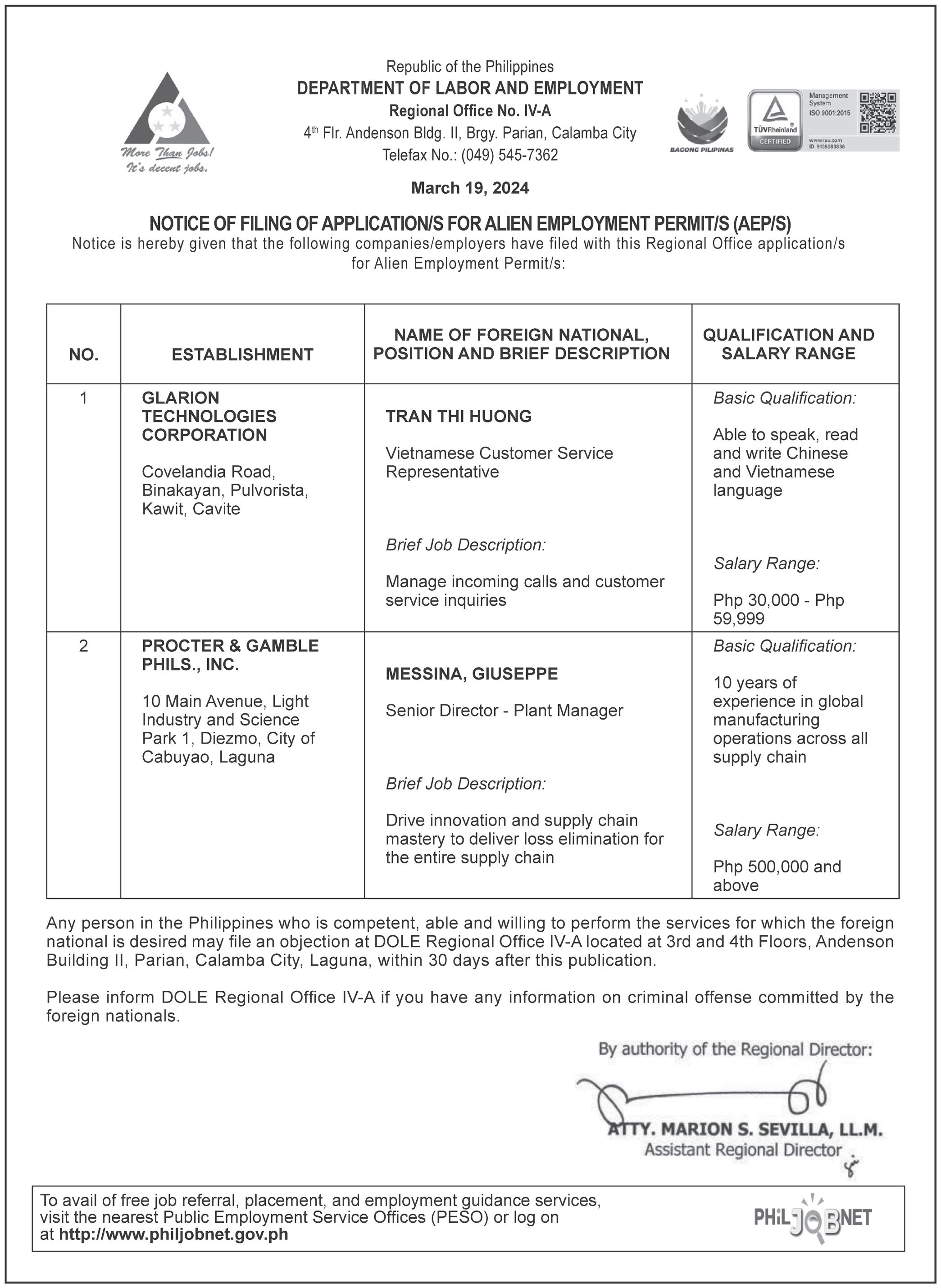 Earlier, Trade and Industry Officer in Charge Ceferino S. Rodolfo told reporters that the department welcomed the rebound in the country’s export performance in January 2024.