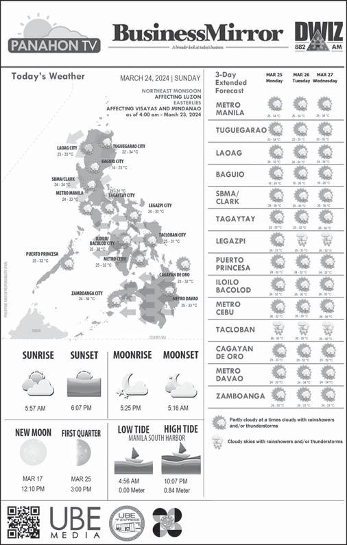 NewsSunday BusinessMirror www.businessmirror.com.ph Sunday, March 24, 2024 A2