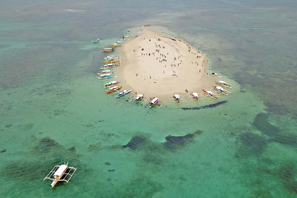 WORLD-CLASS BEACH. Tourists enjoy the clear white sand beach and crystal clear blue waters of Kawhagan Island, in Del Carmen town, Siargao Island. ERWIN M. MASCARIÑAS