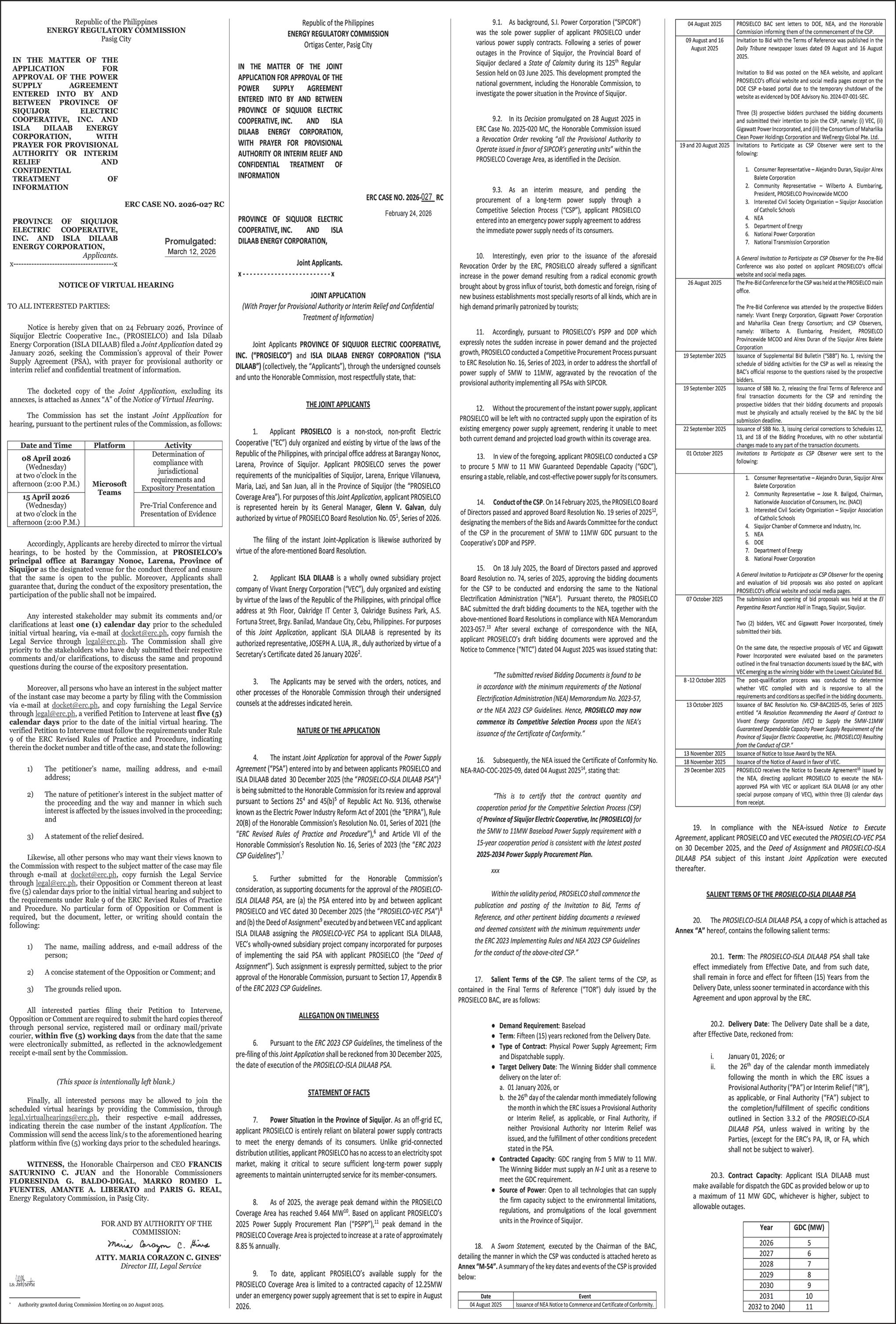 The President said in the EO that he made the declaration upon the recommendation of the Energy Secretary who called for urgent measures to ensure the stability and adequacy of the country’s energy supply to prevent a “critical low energy supply.”