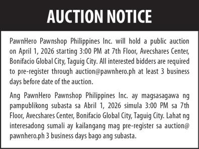 For the March 27 auction, interested bidders are required to register, submit documentary requirements, and post a security bond before participating in the sealed bidding process.
