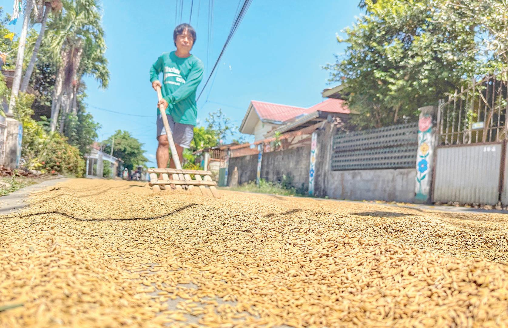 HARVEST SEASON IN FULL SWING A farmer in Barangay Putlod, Jaen, Nueva Ecija, manually dries