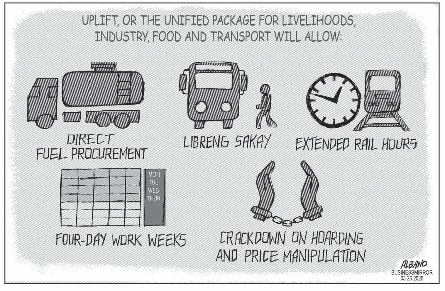The order also created the Unified Package for Livelihoods, Industry, Food, and Transport (UPLIFT) Committee, which is tasked to ensure stable energy supply, uninterrupted essential services, and continued economic activity.