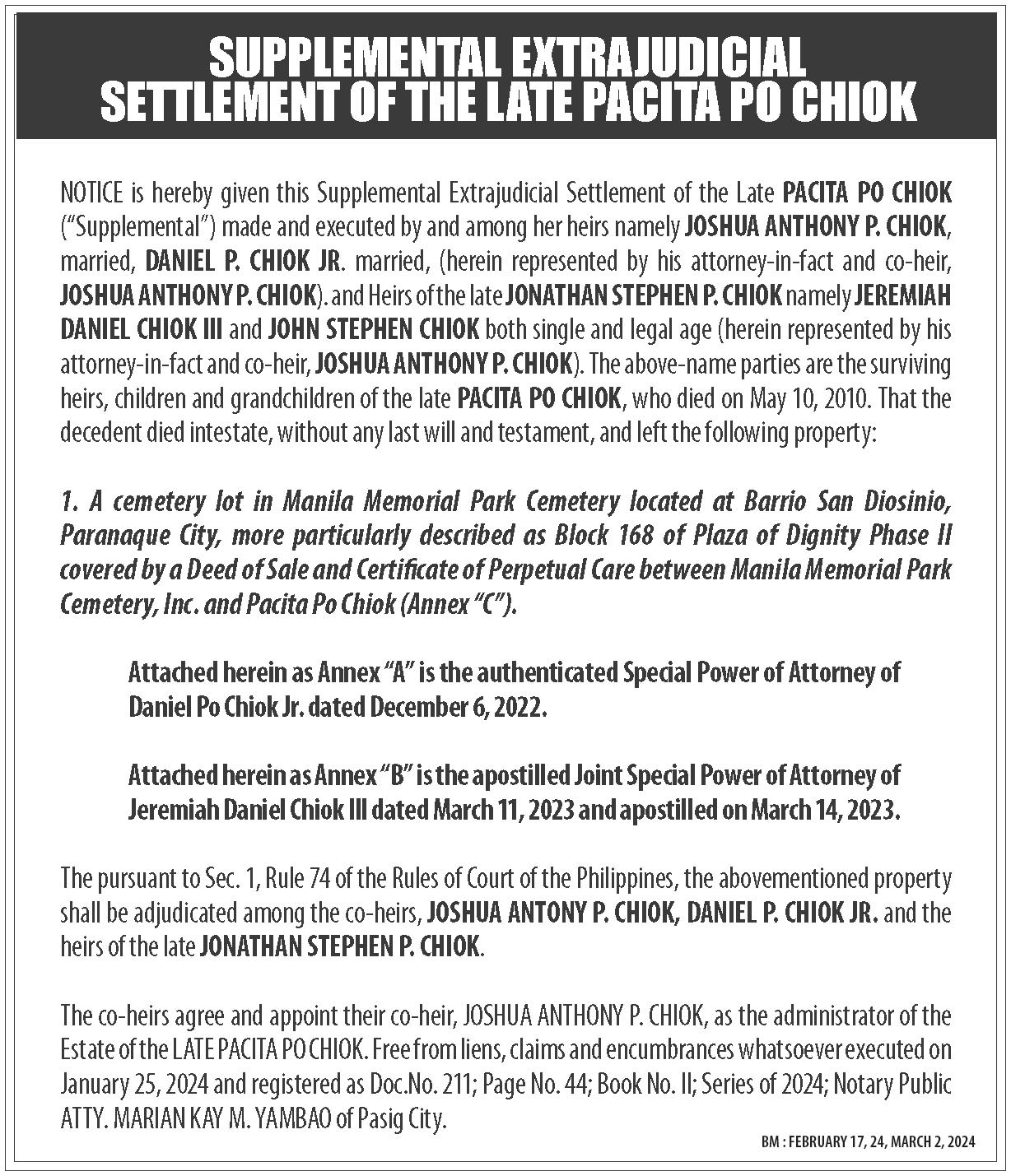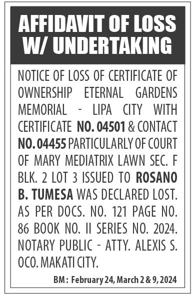 MEANWHILE, Defense Secretary Gilberto C. Teodoro Jr. on February 22 expressed the need for the Philippines to reaffirm its alliances with like-minded nations if it wants to uphold the United Nations Convention on the Law of the Sea amid security challenges in the region.