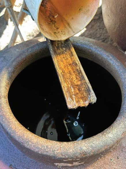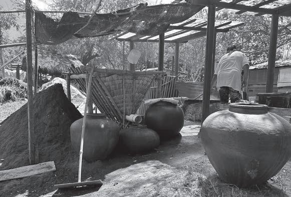 PRODUCTION setup includes earthenware jars, wooden rake, and a filtering vat made of woven nipa palm leaves. HENRY EMPEÑO